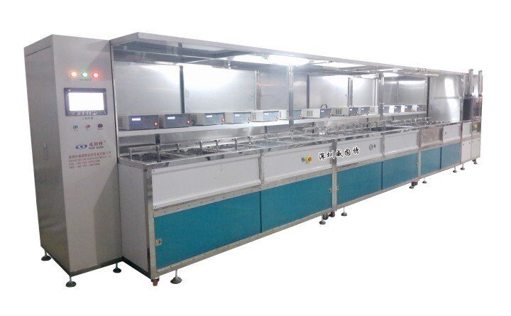 VGT-1609FP為生化濾光片超聲波清洗機(jī),設(shè)備共有16個功能槽,配置有環(huán)保液處理系統(tǒng)、循環(huán)過濾系統(tǒng)、自動恒溫系統(tǒng)、拋動系統(tǒng)、超聲波清洗系統(tǒng)、抽風(fēng)裝置、IPA漂洗系統(tǒng)、IPA烘干系統(tǒng)等。