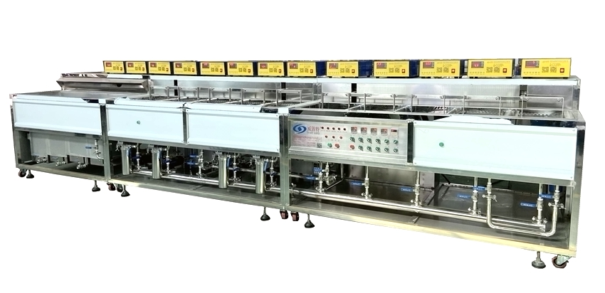 每槽設四面溢流口,溢水槽寬35mm,各槽皆為獨立循環槽,由循環泵將洗劑從儲液箱抽出經過濾后再運回清洗槽,即字母槽循環。