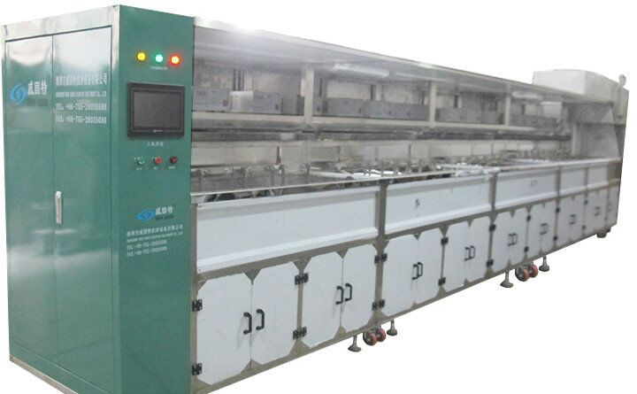 慢拉提升機構:為保證蒸汽浴洗的效果,保障均勻冷卻干燥的過程,在第17,18槽特設自動慢拉提升機構,工件經過蒸汽浴洗后,緩慢提升,通過冷凍區,快速干燥。