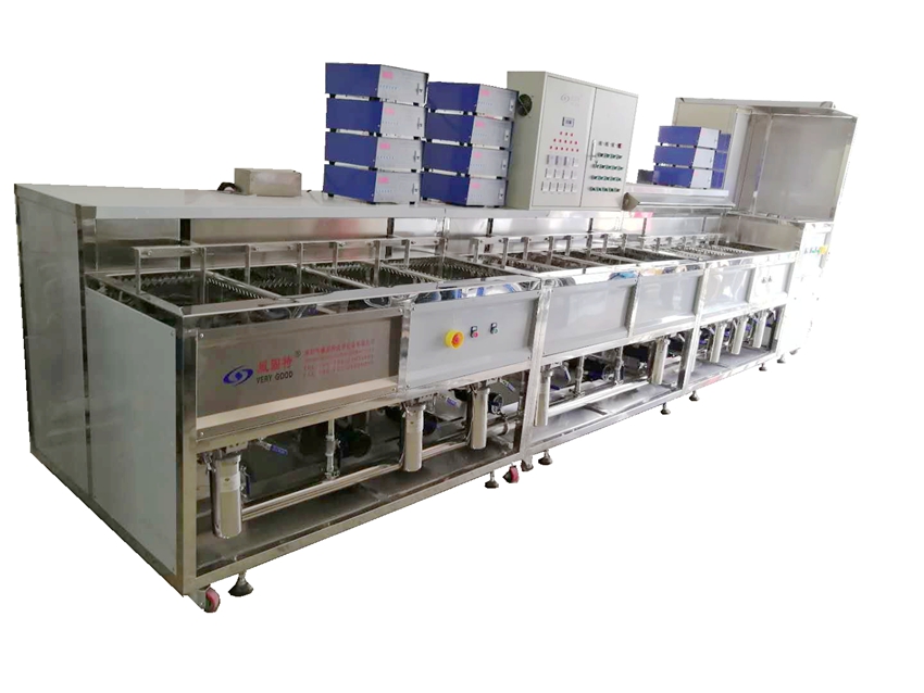 該型號VGT-1409FT前處理超聲波清洗機共有14個功能槽,配置有循環(huán)過濾系統(tǒng)、有機溶劑蒸餾回收系統(tǒng)、自動恒溫系統(tǒng)、拋動系統(tǒng)、、、